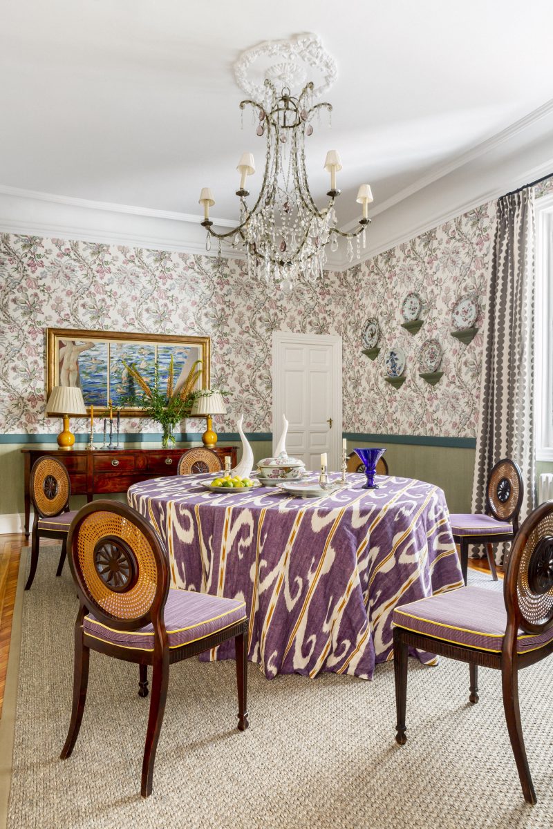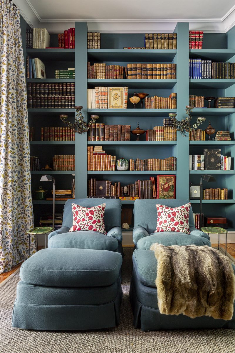 La paleta de colores elegida se centra en tonos de azules y verdes, complementados con sofisticados papeles pintados. Esta combinación no solo realza la estética del espacio, sino que también transmite una sensación de sabiduría, tranquilidad y confianza.
