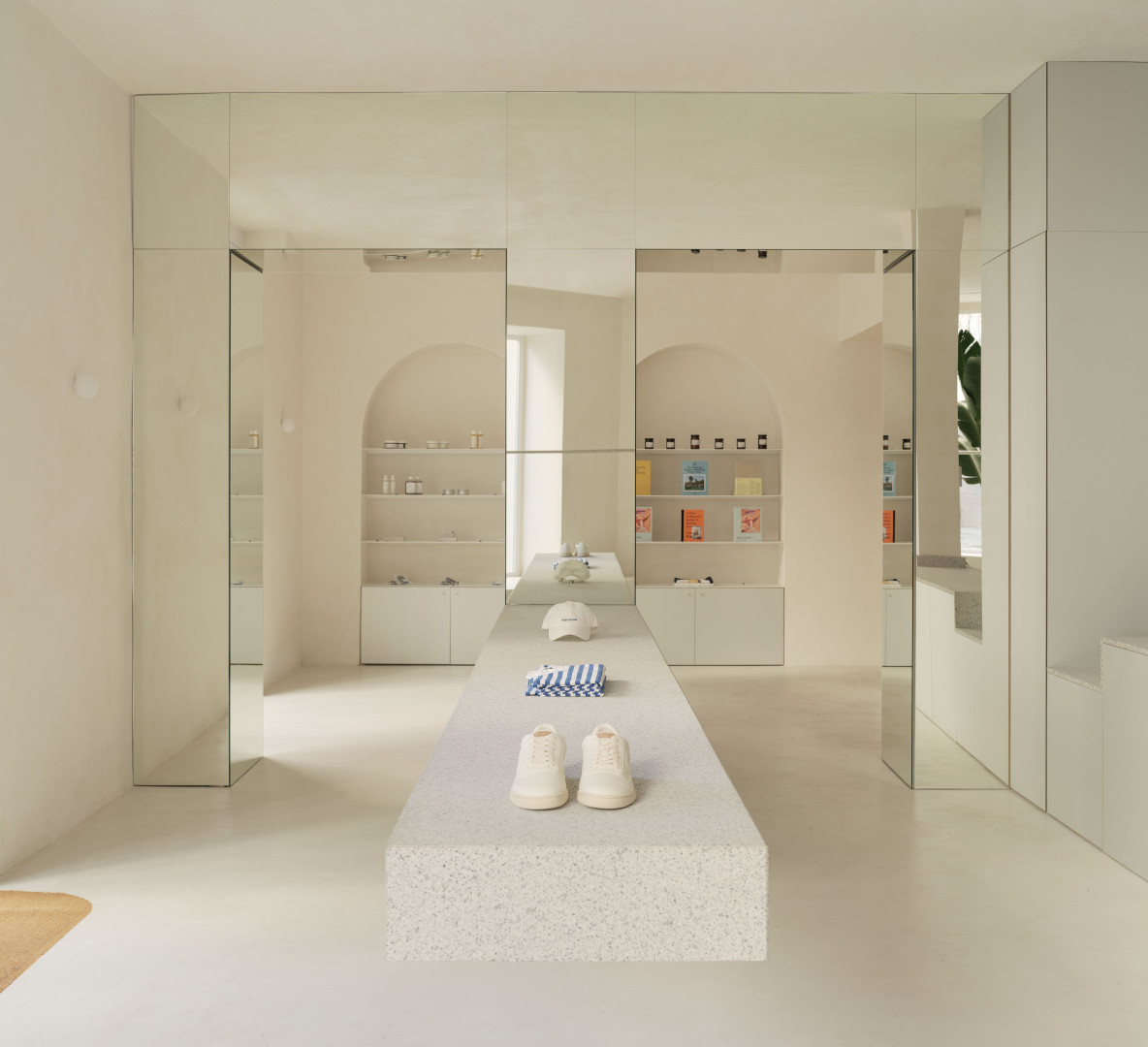 Para este proyecto, se ha apostado por una paleta de colores suaves, como el blanco roto, que no solo resalta los artículos de la tienda, sino que también proporciona a los clientes una experiencia más auténtica y cálida, evocando el espíritu del Mediterráneo.