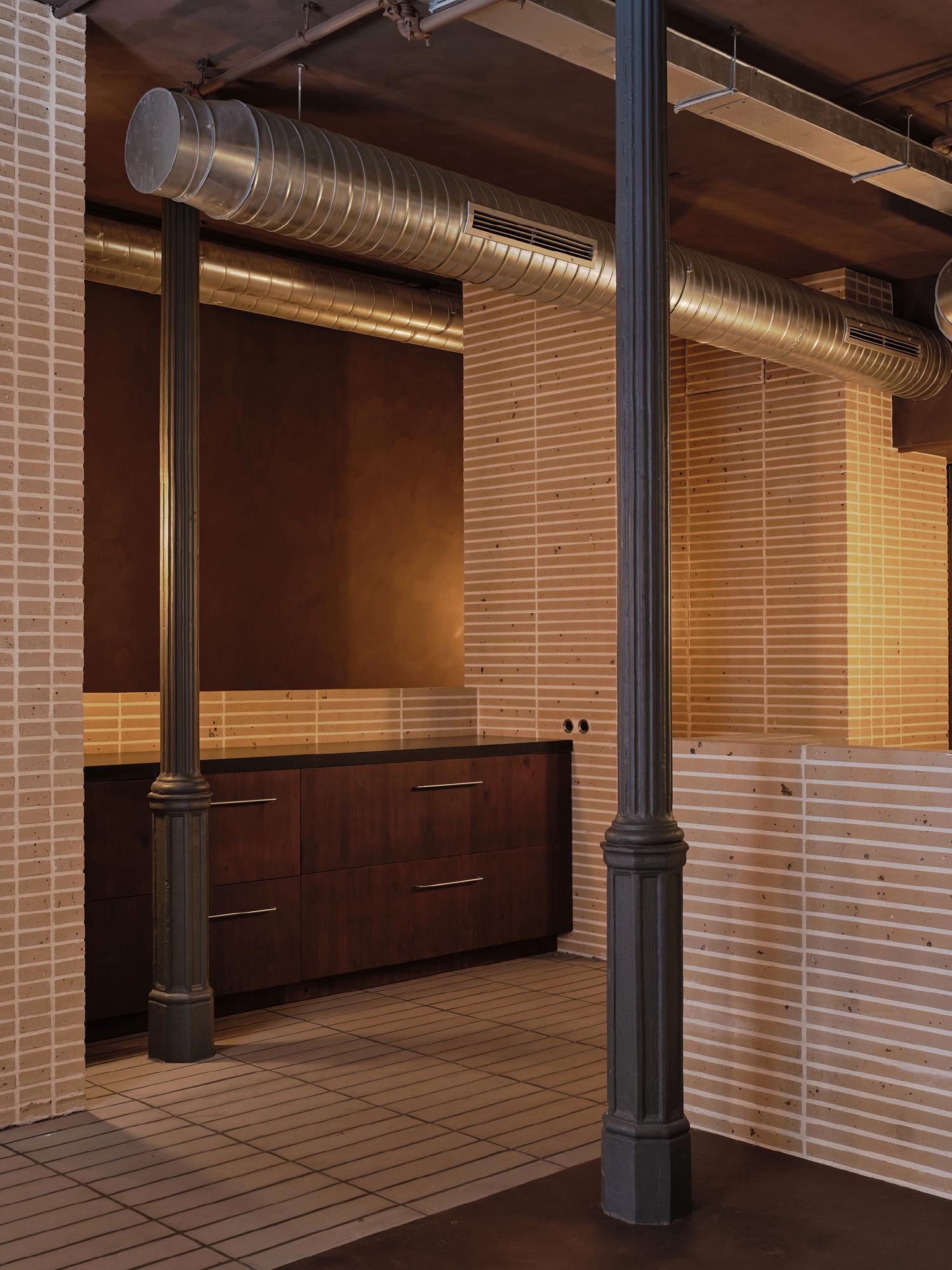 En este caso, hemos completado una renovación integral de todas las áreas del establecimiento. Hemos optado por paredes de mortero a la cal para así poder maximizar la luz del entorno. Además, esta paleta de colores neutra ofrece a los propietarios la libertad de expresar su creatividad sin límites.